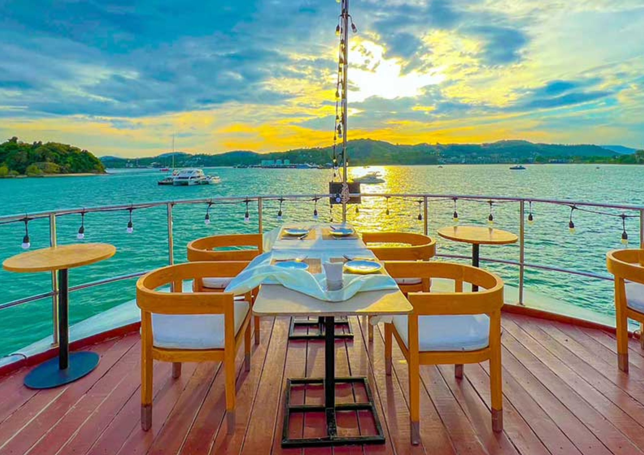 Set sail on the enchanting Sea Angel Boat Club Sunset Dinner Cruise, a perfect blend of relaxation, breathtaking views, and culinary delights. Enjoy the serene beauty of Phuket's coastline as the sun dips below the horizon, painting the sky in stunning hues. Indulge in a delicious dinner onboard while surrounded by the tranquil waters of the Andaman Sea.